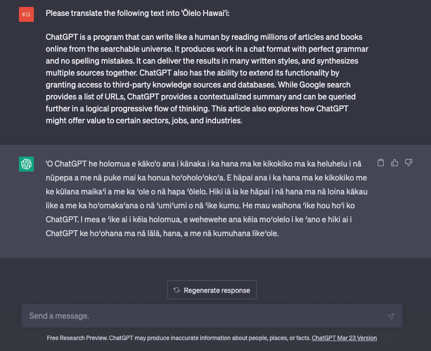 ChatGPT i Ka Leo Hawai'i