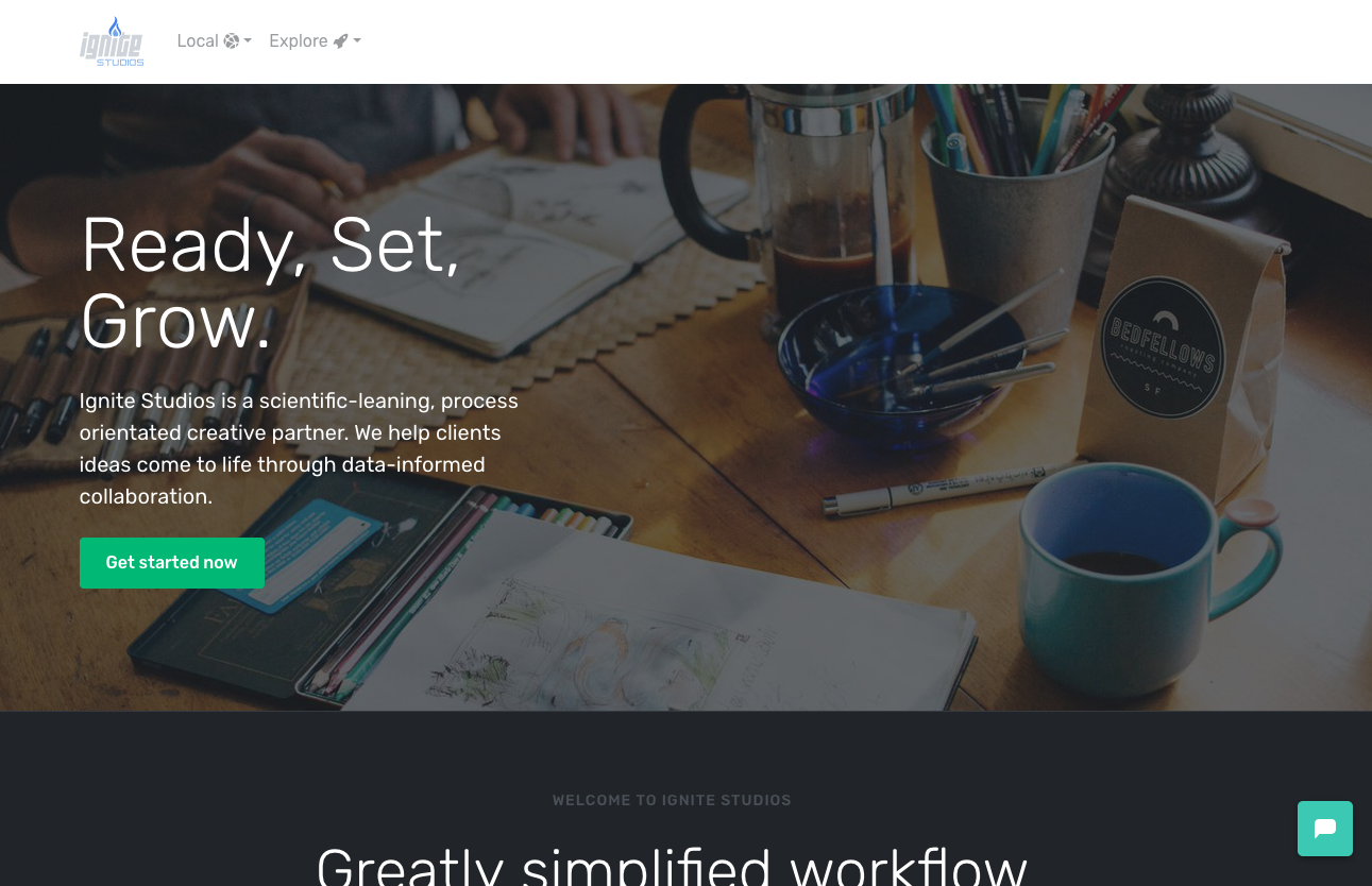 Have started re-writing the Ignite Studios website front-end into Bootstrap + Jekyll. ⚡️Deploys to Firebase. To learn more about static website click here. Here is a preview of the home page.