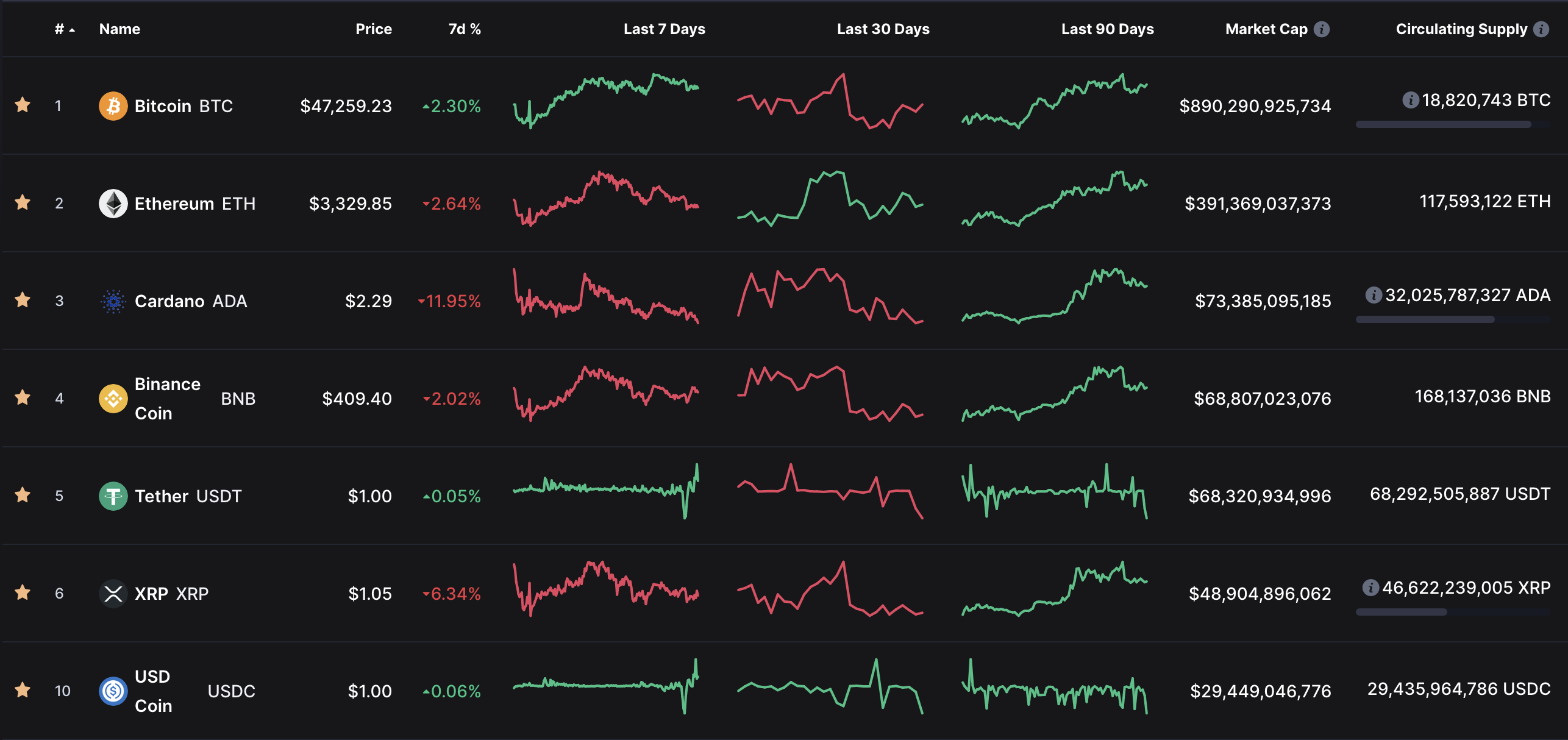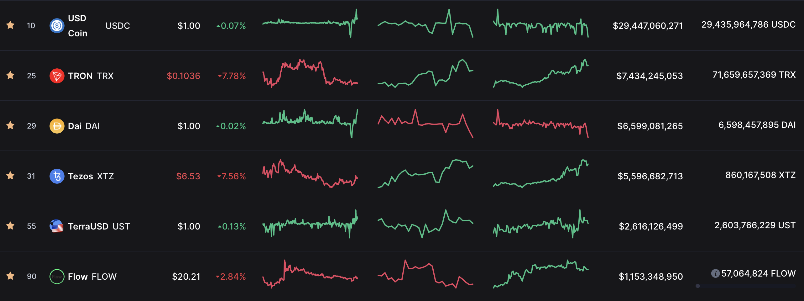 The two largest decentralized stablecoins right now are 'Dai DAI' and 'TerraUSD UST'. This week, they hit a combined $10 billion market cap.